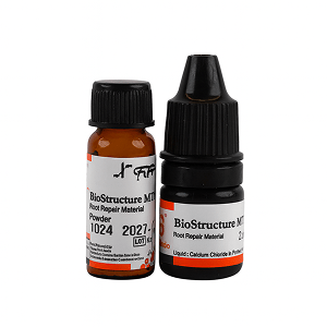 Biostructure MTA is available as a fine powder that is mixed with a specific liquid to achieve a workable paste consistency. The material sets with moisture and forms a stable, strong cement-like structure with high compressive strength. It offers suitable working time while ensuring a secure seal upon setting. Its radiopacity assists clinicians in verifying placement on radiographs, and it remains non-toxic to periapical tissues, encouraging natural healing and dentin regeneration. Suitable for apexification, perforation repair, retrograde root fillings, and direct or indirect pulp capping.