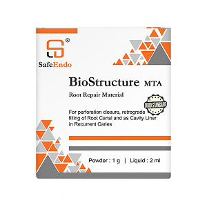 Biostructure MTA by SafeEndo is a mineral trioxide aggregate used for advanced endodontic and restorative procedures. It provides excellent sealing ability and biocompatibility, supporting hard tissue formation and healing. The material sets reliably in the presence of moisture, ensuring predictable clinical performance. Ideal for pulp capping, perforation repair, and root-end fillings.