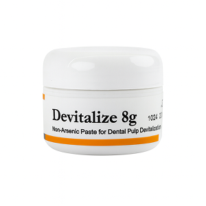 Devitalize by SafeEndo is a reliable pulp devitalizing agent used for effective pain control in endodontic procedures. It helps in rapid devitalization of the pulp, making subsequent root canal treatment more comfortable for both dentist and patient. The controlled formulation ensures predictable results when used as directed. Ideal for clinical situations where immediate pulp extirpation is not possible.