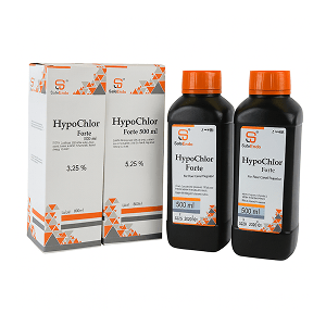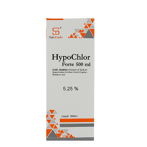 Hypochlor 3.25% and Hypochlor Forte 5.25% are endodontic irrigants formulated with sodium hypochlorite for effective canal disinfection and organic tissue dissolution. The 3.25% solution is designed for routine cleaning, providing safe and controlled action in standard cases, while the 5.25% formulation offers stronger tissue dissolution and enhanced antimicrobial potency, suitable for complex or heavily infected root canals. Both deliver deep cleaning action and support improved debridement when used with irrigation activation systems.