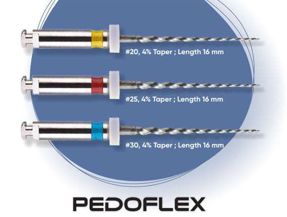 Nickel-Titanium (Ni-Ti) rotary files are widely used for cleaning & shaping permanent teeth. However, in primary teeth, long file lengths and high taper make working difficult. Neoendo Pedoflex Rotary Files offer a solution with a 16mm length and 4% taper, designed for primary teeth.