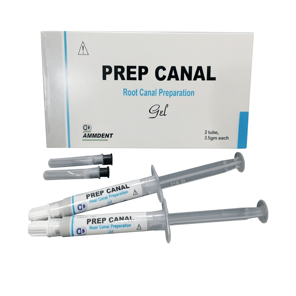 The Ammdent PrepCanal is a root canal lubricating and chelating agent formulated with EDTA (Ethylenediaminetetraacetic acid) for use during biomechanical preparation of root canals. It helps in the removal of smear layer and calcifications, facilitates smooth negotiation of files, and ensures thorough cleaning of the canal system. Its chelating action softens dentin, improving instrument penetration and reducing the risk of file breakage.