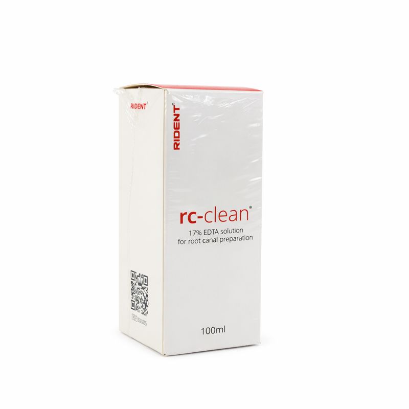 Rident RC Clean is an EDTA-based root canal cleaning and conditioning solution formulated to remove the smear layer, dentinal debris, and calcium salts from canal walls after instrumentation. It effectively opens dentinal tubules, allowing deeper penetration of irrigants and sealers for enhanced disinfection and sealing. The gentle chelating action ensures optimal cleaning without altering the dentin structure, making it an essential step for precise and successful endodontic treatment.